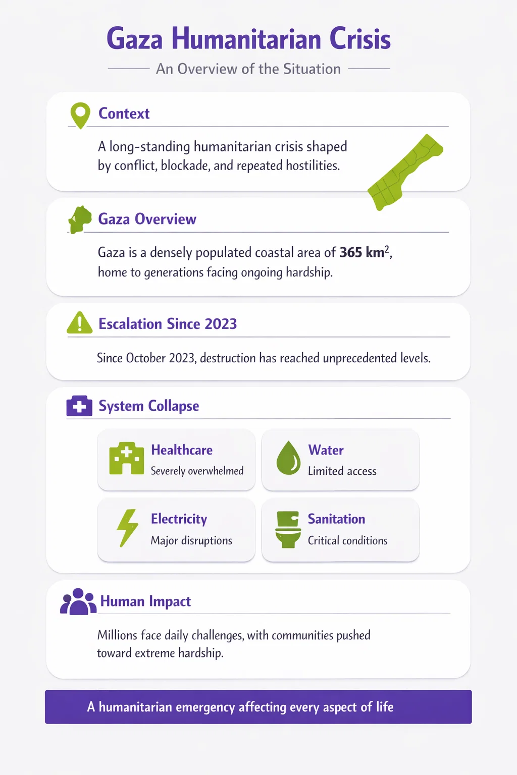 The humanitarian crisis in Gaza represents a complex emergency that has evolved over decades of conflict, blockade, and recurrent hostilities.