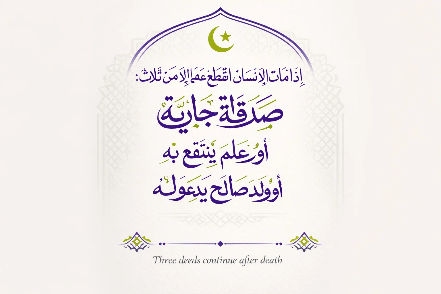“When a person dies, all their deeds end except three: Sadaqah Jariyah, knowledge which is beneficial, or a righteous child who prays for them.”